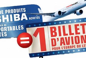 La marque japonaise vient d’annoncer le lancement d’une opération visant à proposer un billet aller-retour pour l’Europe ou les Etats-Unis pour tout achat d’un montant supérieur à 400 € de produits Toshiba.