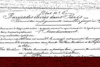 Le rapport adressé au général Valentin, le supérieur hiérarchique du commissaire Lombard (une vieille connaissance pour les lecteurs de ce blog), un agent infiltré de la préfecture de police dresse un tableau des barricades et des canons et fait état de renseignements recueillis auprès d'habtitants de chaque quartier de Paris.