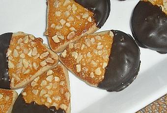 - Faire fondre le chocolat, tromper les petits fours de moitié dans le chocolat et laisser sécher.