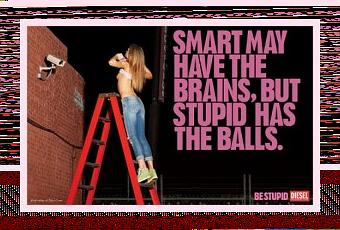 Souvenez-vous, en 2010, Diesel frappait fort avec son slogan provocateur et très second degré « Be stupid » et sa série d’affiches toutes plus décalées que les autres dont celle-ci :