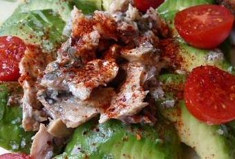 Ici, la base est constituée d'un avocat juste mûr à point : quand on le pèle, la peau vient par plaques. Ensuite, on le coupe par le milieu pour oter le noyau et on le détaille en lamelles. Ajouter un jus de citron.