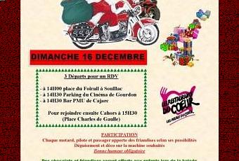 La balade de noël 2012 est organisée par le moto club de Cajarc, le moto club cadurcien et team46 le 16 décembre 2012.
