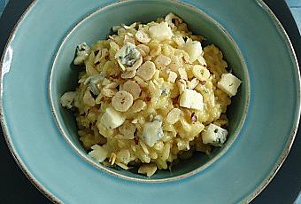 J'ai toujours voulu réaliser un risotto, et c'est enfin chose faite !! Bien évidemment, moi qui suis fan de fromage, je ne me voyais pas le faire avec autre chose que cet ingrédient ! Et comme j'avais du gorgonzola que j'ai acheté exprès pour cette recette, c'est donc avec entrain que je me suis mise au travail !!