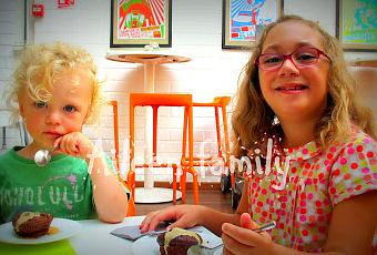 Mes deux gonzesses avant la coupe...Chez Planète Mômes on peut aussi manger un super goûter !
