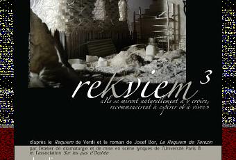 Avec Rekviem³, il n’est plus question de présenter le Requiem dans sa version liturgique et traditionnelle mais à travers un nouveau prisme inspiré du roman de Josef Bor Le Requiem de Terezin et du Requiem de Verdi .