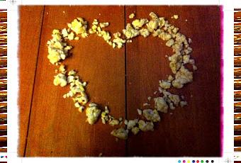 Un coeur en miettes de galette de riz, et des lutins qui ont pris une bonne collation, sans jouer de vilain tour.