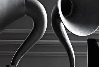 Basé sur le même principe que le Phonofone II, Restoration Hardware fait revivre le gramophone pour le bonheur des amateurs d’objets anciens. Pour iPhone ou iPad, son Gramophone amplifie jusqu’à 4 fois le volume, et ce évidemment sans la moindre alimentation électrique ; uniquement selon l’ingénieux principe du phonographe, inventé par Thomas Edison. Pied en noyer, pavillon en acier. Prix : 250 et 300 $.