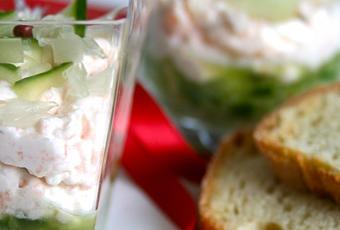 - égouttez un peu le concombre et répartissez-le dans des verrines