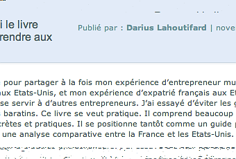 J'ai évoqué sur mon wall Facebook l'e-interview que j'allais faire avec Darius.. Histoire de faire un peu de buzz et de voir les premières réactions ... Certains voudraient disposer d'un livre de même veine pour entreprendre en Angleterre, un autre pour le Luxembourg, etc...