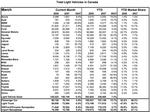 Voici le nombre de véhicules vendus au Canada pour le mois de mars pour chacune des marques. Il y a un recul négligeable de 0.5% par rapport à 2007, mais on peut constater que l’industrie va très bien malgré tout.