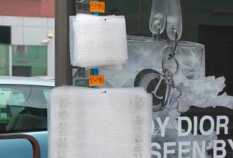 Qui n’a pas déjà ouvert une boîte en carton et avant de se lancer dans la construction d’un meuble ou d’un ordi, n’a pas commencé à faire exploser avec une joie sadique les petites bulles d’air des feuilles protectrices ? Biancoshock, un street artiste à l’humour décapant, a eu l’idée d’en pendre partout comme une sorte de service publique gratuit pour que tout le monde freine son stress en rue ! Il fallait y penser ! Il a même imaginé le temps qu’on met pour faire péter les bulles et propose donc trois formats 3, 5 et 10 minutes d’anti-stress ! http://www.fra-biancoshock.org