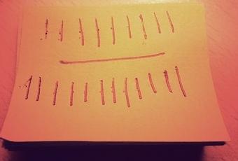 Sachant que… nous étions samedi soir, que nous étions deux, que j’ai retrouvé ceci sur la table basse, que deux verres de whisky se trouvaient à côté, que nous avions évoqué des souvenirs, que nous n’avons pas regardé Miss France, ni le Téléthon, ni rien d’ailleurs, que la pizza était bonne, que nous avons échangé de nombreux sms, que nous n’avons pas cherché à refaire le monde, que nous étions deux garçons, que la soirée s’est terminée à 23h00, que je suis nul en math, que tu peux compter 21 barres horizontales, et une verticale, que c’est un Post-It, et qu’il est vert.