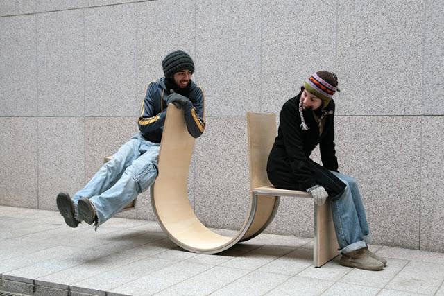 "Swingers" est une chaise double crée par Cho Neulhae et Jaebeom Jeong. Quand deux personnes sont assises sur cette chaises, elle fonctionne comme un fauteuil à bascule, penchant d'un coté ou de l'autre, au gré de ses occupants.