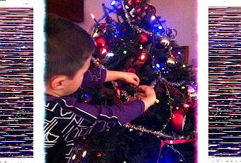 Un Fiston qui décorent avec passion notre sapin de Noël 2012.