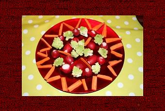 Carottes en bâtonnets, romanesco et radis trempés dans une sauce au miso et sauce tahin…