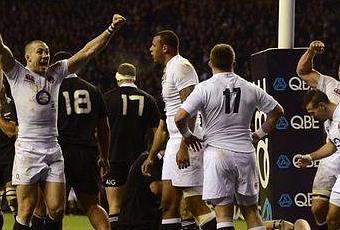 Mike Brown, Chris Robshaw et James Haskell peuvent exulter, ils ont battu les Blacks ! Crédits : mirror.co.uk