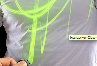 Imaginé par Glow Threads, Interactive Glow Shirt est un t-shirt blanc sur lequel il est possible de dessiner à l’aide d’un pointeur laser ou d’une lampe UV. Entièrement interactif (puisqu’il est possible de dessiner sur l’intégralité du t-shirt), celui-ci est disponible en plusieurs tailles. Comptez 25 $ pour le t-shirt et 10 $ pour le pointeur laser.