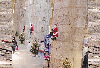 Quelques stands (en forme de cabane de noël) sont installer sur le parvis de l'abbatial ou d'autres personnes exposes et vendent leurs travailles.Nous retrouvons aussi les éternelles buches en bois décoré façons "Père noël" dont j'ai déjà dit le plus … que j'en penser l'an passé.