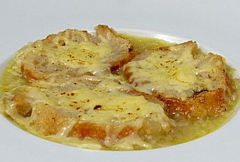 Les ingrédients : 5 oignons rosé de Roscoff, beurre 1/2 sel, eau, sel, poivre, pain grillé, comté râpé, 1 c à s de farine.