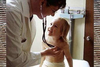 Un médecin auscultant un enfant
