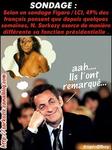 Le ciel des sondages s'éclaircit pour le chef de l'Etat qui enraye sa descente dans les enquêtes d'opinion. Deux semaines après les élections municipales, pourtant perdues par la droite, et pour la première fois en trois mois, sa côte de popularité remonte de trois points : 40% des personnes interrogées ont une opinion positive de Nicolas Sarkozy, selon une enquête LH2-Libération à paraître lundi ... / ..." - Source le Figaro