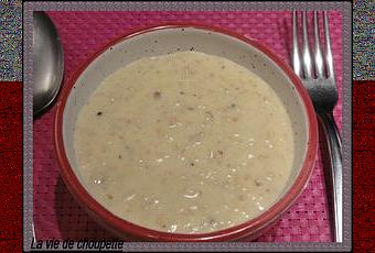 Ingrédients : 150g de Rapidoats, 20g de beurre, 1/2l de lait, 1/4l d'eau, 1 cube de bouillon de volaille, 5cl de crème, 1 oeuf, 1 pincée de sel;