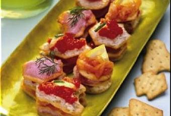 éventuellement remplacer le saumon par du jambon cru et les œufs de lump par des graines de sésame. Pour la décoration, vous pouvez utiliser de fines lamelles de citron et quelques brin de