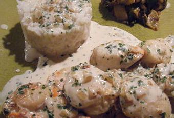 - Avant de dresser les assiettes, remettre les noix de saint-jacques dans la sauce pour qu'elles s'en imprègent.