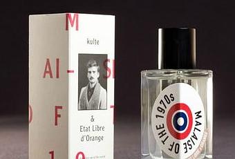 En ce début de saison, avec sa collection APOSTROPHE, KULTE nous entraînait dejà dans le monde des lettres et des mots, époque où de certains Pivot ou Polac recevaient des écrivains protestataires, prêts à enfumer les plateaux de leur cigares XXL et de leur cognac bien serré ! Après la révolution des consonnes et voyelles sur textile, voici celle d'une fragrance nouvelle imaginée en collaboration avec la boutique parisienne du Marais ETAT LIBRE D'ORANGE ! Le voyage, en duo, d'un parfum MALAISE OF THE 1970's affranchi de toutes les lois ! Brume envoûtante mêlant la brûlure du poivre, l’âcreté du cuir et l’odeur du sang (révolutionnaire). A capturer dans toutes les boutiques Kulte (rue F. Davso 1er - 50ml 64 euros). Composition : Citron, poivre noir, ambrette, pruneau JE, aldŽhydes Žlectriques, hŽliotrope, patchouli, orcanox, cuir...