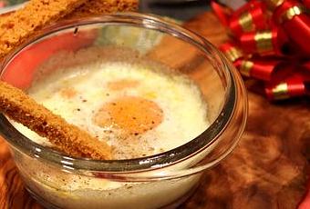 Enfournez le petit ramequin pendant 15 mn à 180°. Le blanc sera bien pris et le jaune sera coulant. Servez immédiatement ! Vous pouvez réaliser des petites mouillettes de pain d'épice !