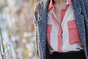 Short femme fluide à plis, gants cuir femme, étole douce imprimé géométrique et ceinture bi-matière (en vente chez Somewhere) – manteau Avant Premiere (en vente sur le site des Galeries Lafayette ou au magasin de Strasbourg) – chemisier en soie American Retro – compensées Asos (en vente sur mon vide-dressing ou des très ressemblantes chez Ash sur le site de chaussures Spartoo)