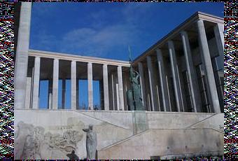 Sous la statue de La France d'Antoine Bourdelle, nous avons découvert un mémorial à la France Libre ...un peu anachronique devant cet édifice construit à l'occasion de l'exposition internationale de 1937 et qui connut bien des avatars. Et dont la silhouette évoque vaguement la grande Chancellerie de Berlin ... ou un temple grec aux colonnes bien maigres, au choix ....