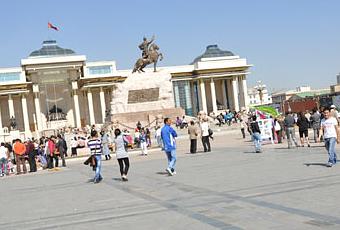 Le Musée National d’Histoire. Objectif numéro un de ce début de journée que l’on espère enrichissante sur la culture mongole. Manque de pot ou hasard du calendrier, le musée est fermé, lui censé être ouvert tous les jours. Il est en travaux. Une pointe de déception se dessine mais ne nous empêche pas de poursuivre notre route, découvrant par la même occasion une partie de la ville qui nous était encore inconnue. Nous nous arrêtons au Musée d’Histoire Naturelle (2500 T l’entrée). Il y a peu de monde. Nous découvrons la faune et la flore de Mongolie. Géographie, géologie, animaux empaillés, collections d’insectes et de squelettes de dinosaures, et j’en passe, s’affichent sur trois niveaux. La visite vaut le coup. C’est un bon moment passé qui s’avère à la fois instructif et distrayant.