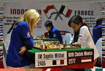 1e ronde du tournoi de parties lentes ce mercredi à Djakarta, dans le match entre la France et l'Indonésie. Hier, les joueuses indonésiennes ont surpris leurs adversaires françaises en l'emportant par 10 à 6 en rapide.