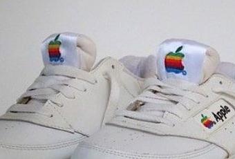 Apple va donc sortir un catalogue riche de gadgets en tout genre, évidemment dédié à la pomme multicolore. Pèle-mêle, on y retrouve des sacs, des parapluies, des montres, des tasses… . L’un des articles les plus aboutie reste quand même cette superbe paire de basket, aujourd’hui vintage mais qui aurait quand même son succès à n’en pas douter
