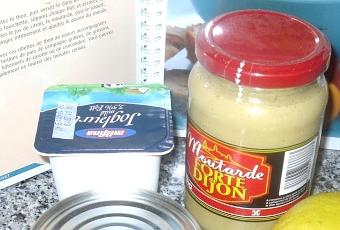 Un recette facile et rapide à réaliser et en plus trés économique! Vous pouvez remplacer le thon par du saumon! Ingrédients 200 g de thon en boite au naturel 3 c à soupe de yaourt nature (onctueux) 1 c à soupe de moutarde forte 1 c à c de jus de citron ou plus si vous voulez poivre du moulin Préparation Egoutter le thon, puis le verser dans un bol, ajouter le jus de citron, le yaourt, la moutarde! bien mélanger et ajouter du poivre du