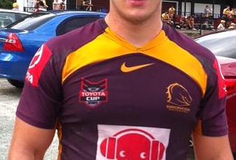 Benjamin Garcia portant le maillot des Broncos de Brisbane avant un entraînement avec l'effectif de la Toyota Cup