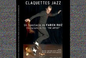 Fabien Ruiz danse. Ou danse le rythme, ce serait peut-être plus juste. Et joue, et donne, et incarne, et frappe, et glisse, et pointe, et dialogue avec, et et et il fait des phrases avec les pieds. Il met ses pas dans ceux de Fred Astaire. Quand on a vu danser Fabien Ruiz, il faut bannir une expression de notre langage : « bête comme ses pieds ». Car il y a de l’intelligence dans ces pieds-là. Ils racontent une histoire du monde : ils unissent la gigue irlandaise et les danses africaines, le cinéma parlant et la musique noire américaine, les voyages au long cours et les orchestres où jouaient les grands-parents de Fabien ; ils racontent le temps d’avant le cinéma, le big band de Duke Ellington, le sel répandu dans la cuisine pour faire un son proche des balais sur la batterie ; ils disent ainsi l’universel et l’intime, de l’allure élégante du danseur jusqu’à la qualité de ses chaussettes. Parfois on ferme les yeux et le son qui nous parvient est bien un son de percussions mais il faut ouvrir presque aussitôt les yeux pour admirer les déplacements du danseur. Et Fabien nous donne une première leçon de claquettes : chaque pas a un nom, ainsi les frappes, les déplacements peuvent s’écrire et se transmettre autrement que par l’image, même si c’est la transmission directe qui donne toutes les nuances : vitesses, hauteur, directions…