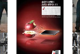 Après Samsung ou encore Nokia, c’est au tour de LG de troller sur Apple à travers une campagne de pub parue dans les magazines coréens. On y voit clairement une pomme se faire couper en deux par un LG Optimus G, le dernier haut de gamme du constructeur coréen, qui se d’ailleurs disponible chez nous en début d’année.