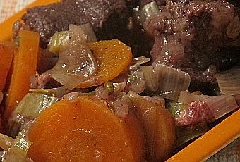 Le lendemain, réchauffez les joues de boeuf et servez avec un gratin dauphinois.