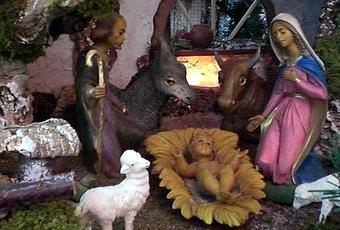 L'âne et le boeuf réchauffent l'enfant Jésus