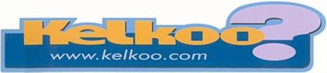 Le premier logo de Kelkoo était aux couleurs du site dans les tons de bleu , jaune et violet.