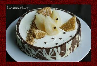 Battre les crèmes et le sucre en chantilly, puis l'incorporer au mélange à la poire refroidi. Verser dans les cercles de biscuit joconde et placer au frais avant de décorer.