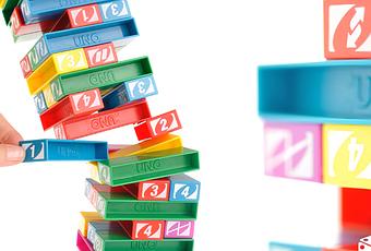 Redécouvert ce week-end, caché au fond d’un tiroir, cette variante du célèbre Uno, où les cartes sont remplacées par des briquettes empilées. A tour de rôle, il faut retirer une briquette du tas pour la placer à l’étage supérieur, en respectant les règles su Uno: la briquette ’2 / jaune’ ne permet de retirer qu’une briquette ’2′ ou ‘jaune’. C’est rapide (moins de 10 minutes par partie), et bien plus amusant que le Uno classique. Bref, un excellent cadeau de fin d’années…