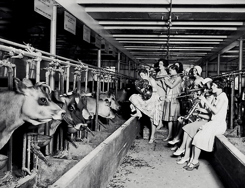 m-ick:All Girl Band Serenading Cows, by Angus B. McVicar, August 1930.(出典: musicbabes (slowleanerから))***