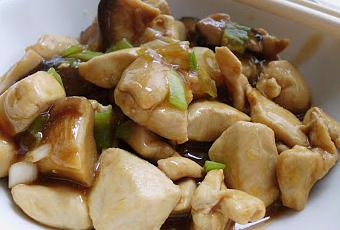 Ingrédients 300 g de poulet 10 champignons shiitaké séchés un oignon nouveau 3 c. à soupe de sauce de soja claire 2 c. à soupe d'huile de tournesol 1 c. à soupe de vin jaune chinois (vin de ShaoXing) 1 c. à café rase de fécule de pomme de terre 1/2 c. à café d'huile de sésame 50 ml d'eau un peu de sel (optionnel)