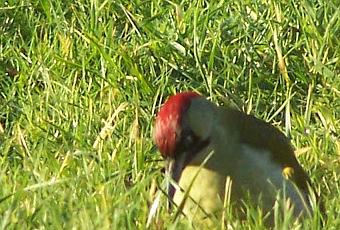Tout d'abord, j'ai eu la visite de mon ami le pivert. Il vient régulièrement se nourrir dans la pelouse. Son cri est caractéristique, pas besoin donc de surveiller la fenêtre, il prévient quand il arrive....Il ne reste plus qu'à s'approcher doucement de la fenêtre et déclencher l'appareil photo :