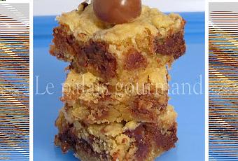 Des carrés gourmands et délicieux et dont j'ai pris la recette chez, Annie's City Kitchen. Seul petit bémol, le goût des Whoppers est un peu masqué par le chocolat, la prochaine fois je mettrais 1 1/2 tasse de Whoppers et qu'1/2 tasse de chocolat.