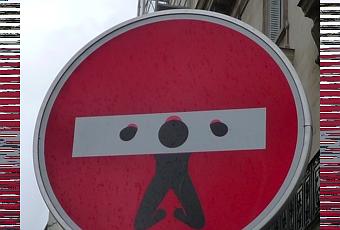 J’avais déjà ici, il y a quelques mois, évoqué les œuvres urbaines de CLET, ce Breton sévissant un peu partout, et largement en Italie, et qui s’éclate en détournant les panneaux de signalisation. Bien souvent, le détournement est drôle et bon enfant, parfois le résultat peut s’avérer plus oppressant, comme le panneau ci-contre symbolisant un homme supplicié. Ce panneau a été photographié à Paris, près de la place du Châtelet.
