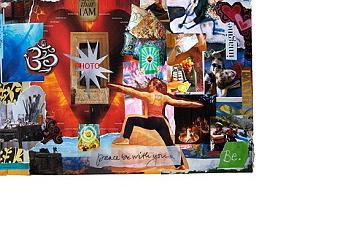 Collez une photo de vous au centre du tableau et commencez votre montage en collant les images et les mots de votre avenir autour de vous